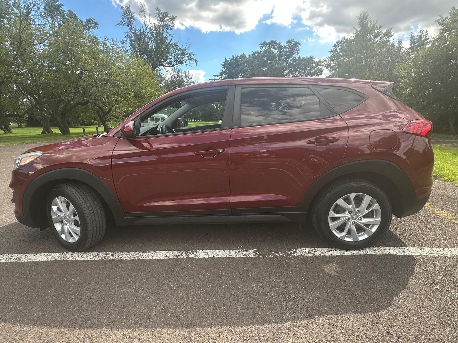 Experience the perfect blend of style and functionality with the 2019 Hyundai TUCSON SE, dressed in a striking Gemstone Red exterior that is sure to turn heads wherever you go. Under the hood lies a robust 2.0L I4 engine delivering an impressive 164 horsepower and 151 ft-lbs of torque, ensuring a smooth yet powerful drive every time. Whether you're navigating city streets or cruising on highways, this SUV offers reliability and performance that meet your everyday needs.